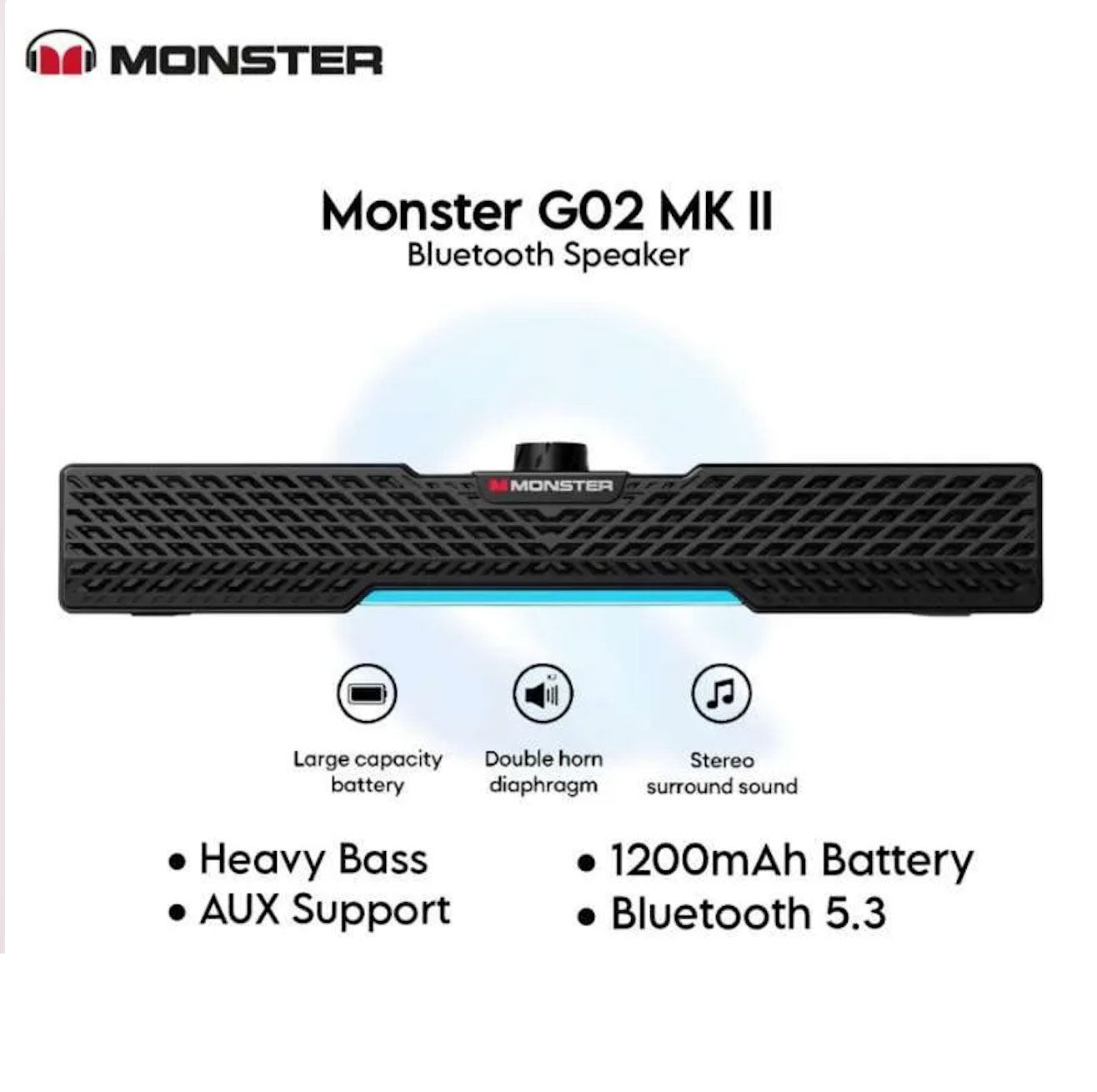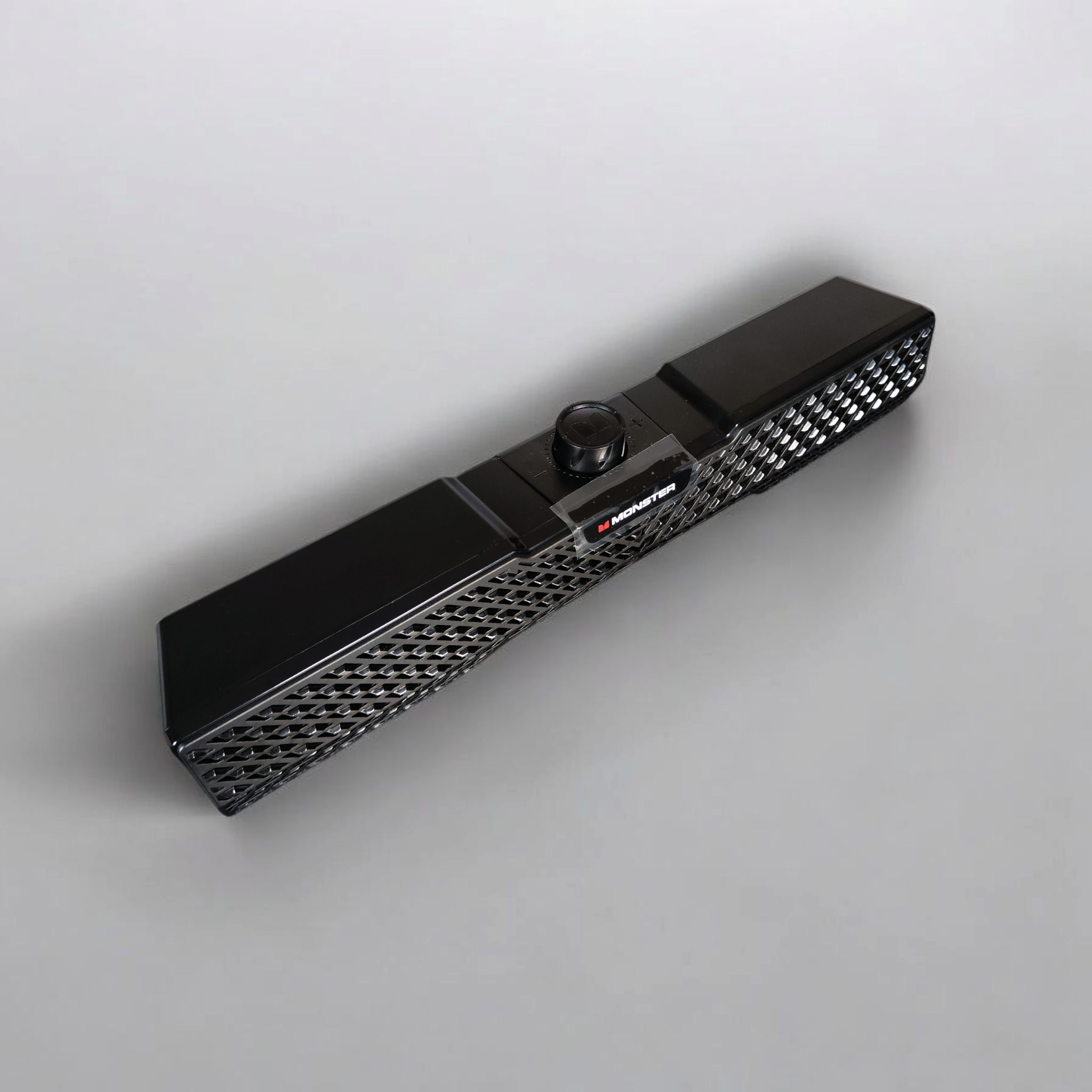 اسپیکر Monster Airmars Go2 MK2 یکی از جذابترین و کاربردیترین ساندبارهای قابلحمل است که با طراحی مدرن و امکانات کامل، تجربهای فراتر از انتظار را برای شما فراهم میکند. این مدل با بهرهگیری از دو بلندگوی ۵ سانتیمتری، صدایی شفاف، رسا و با تفکیک عالی ارائه میدهد و برای گوش دادن به موسیقی، تماشای فیلم یا گیمینگ کاملاً ایدهآل است.