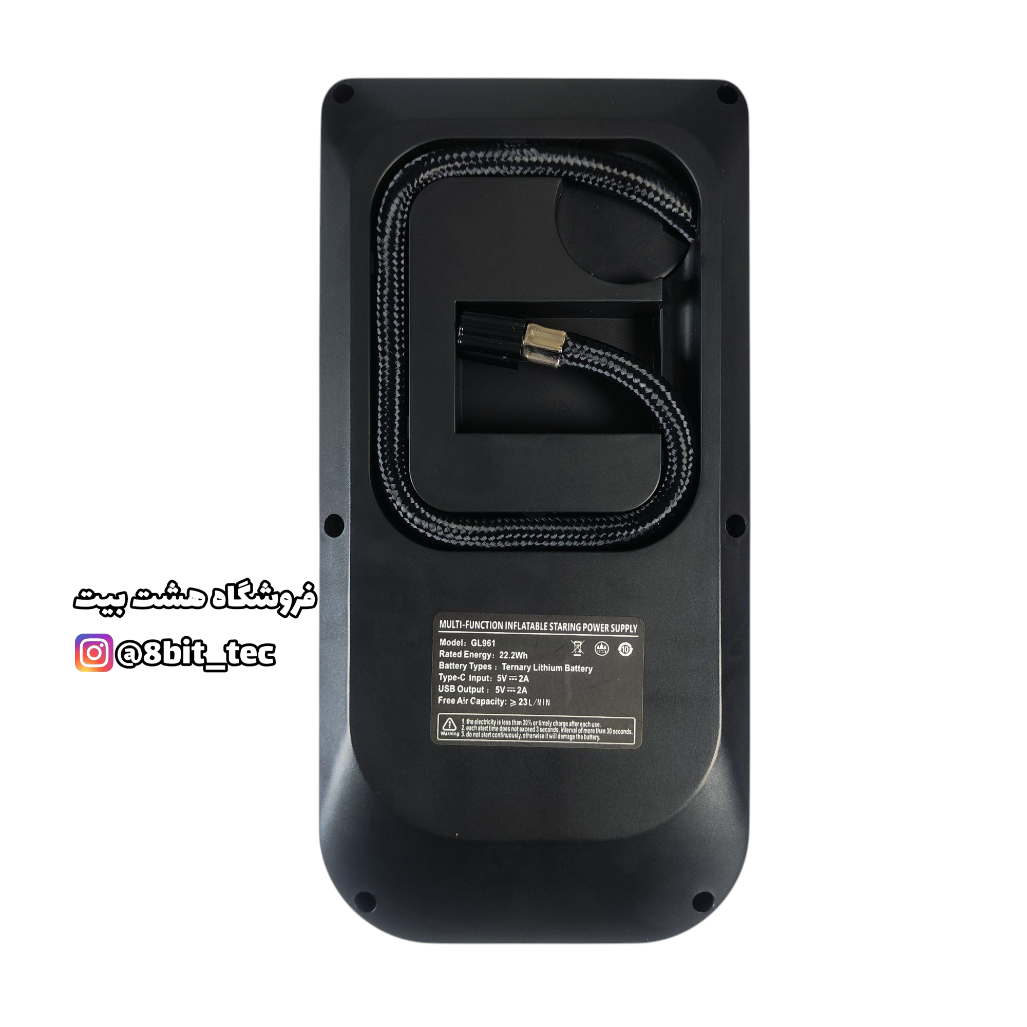 این دستگاه با باتری قدرتمند ۲۲.۲ واتساعت (ولتاژ ۱۴.۸ ولت) میتواند برای روشن کردن خودروهای سواری (زمانی که باتری خالی شده) مورد استفاده قرار گیرد و با پمپ باد قابل تنظیم در واحدهای PSI، KPA، BAR و KG/CM² برای باد کردن لاستیک خودرو، موتور، دوچرخه، توپ و تشک بادی کاربردی است.