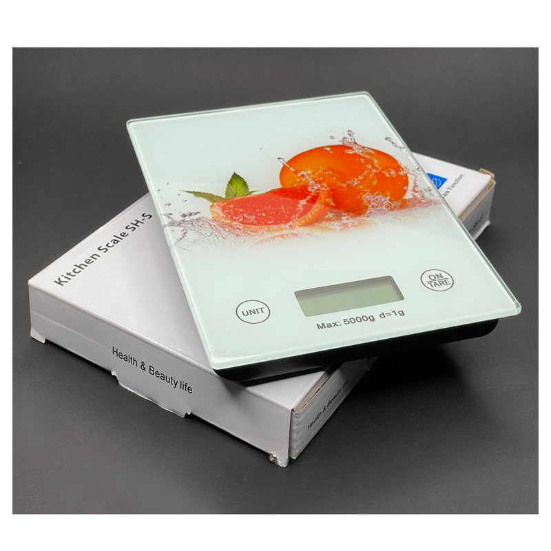 ترازوی آشپزخانه KITCHEN SCALE SHS با ظرفیت تا ۵ کیلوگرم و حساسیت ۱ گرم. مناسب وزنکشی جامدات و مایعات، دارای دو واحد اندازهگیری برای آب و شیر، بدنه پلاستیک با صفحه شیشهای و تغذیه باتری (دو نیمقلم). ارسال سریع و ضمانت اصالت